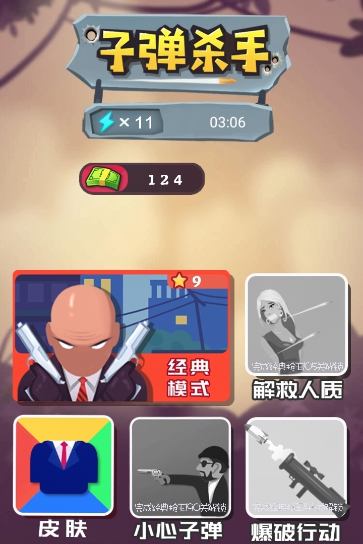 有限的子弹,数不清的敌人!你需要掌握一定的物理知识,利用地形、机关等技巧。击杀你的目标!使用的子弹越少,你所获得的分数就会更高,上百个关卡等待着你的挑战。