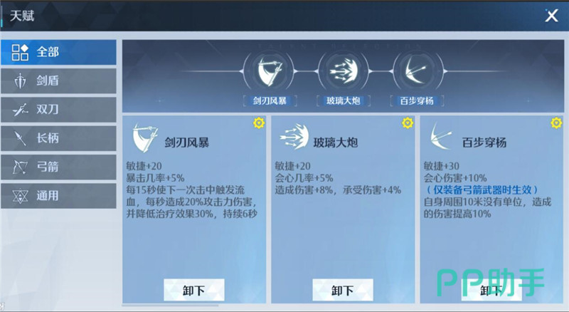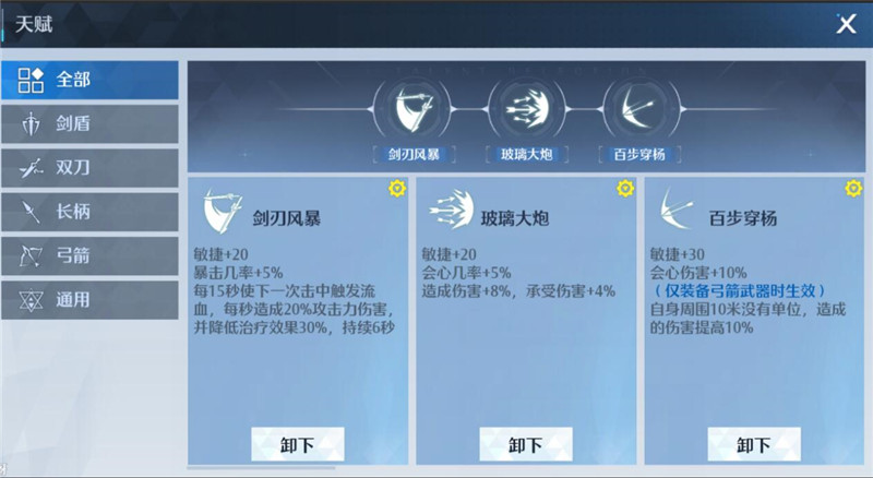 全输出型加点一般都是后期双刀选择的加点方法,当本职业所有的技能都点满了之后,剩余的技能点可以在手弩里面选择技能来加点。提高双刀的远程输出能力。