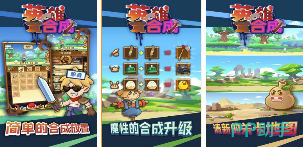 加入了合成元素的放置合成类型手机游戏,你可以通过合成的方式来获取更多的强力装备。带上你喜欢的头盔和萌趣的宠物一起去对抗那些讨厌的怪物。