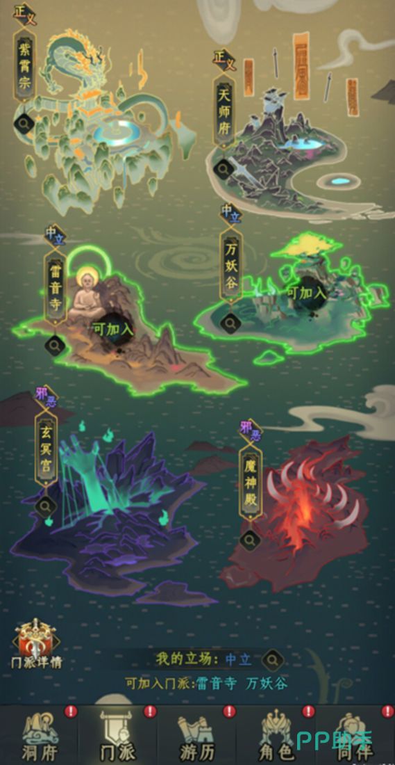 一起来修仙是一部古风类型的放置游戏,在这个游戏中玩家们可以自由加入门派来学习武林绝学,下面就给大家来讲讲一起来修仙门派选择的具体介绍,不清楚的小伙伴快点一起来康康吧。