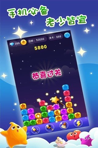 经典的星星消除玩法,不管是想要重温童年乐趣,还是单纯打发时间,都是非常棒的选择。同时简约的画面设计、简单的操作模式,不管是大人,还是小朋友,都能体验到轻松消除的乐趣。
