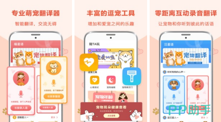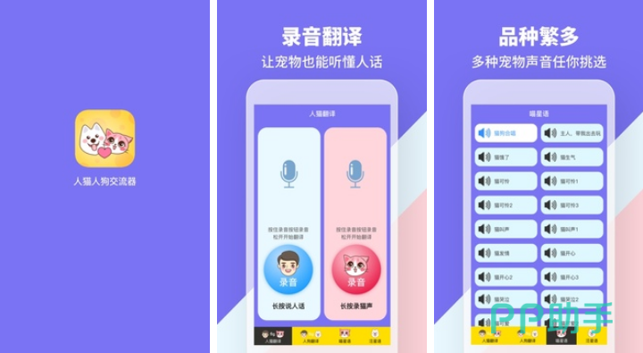 在这款软件中使用者们可以翻译狗狗和猫猫的语言,翻译好之后大家就能理解宠物们想要说的话,点击对应的叫声按钮可以让狗狗迅速获得注意力。