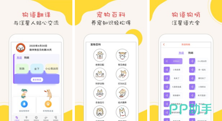 这是一款能够双向翻译语言的软件,除了能将主人的话翻译成狗语之外还能将狗语翻译成人话,另外软件中还有很多的基本狗语单词,点击一下就能让狗狗瞬间明白主人的意思。