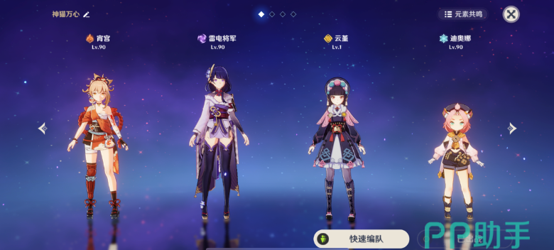 尽管这个阵容比较抽象,但是如何为一个单体主C提供一些AOE的伤害,目前的选择也只有雷电将军,雷电将军的E技能会给当前上场角色的普攻动作附带一个雷属性范围斩击伤害,而宵宫是一个对群效率跟尴尬的火系弓箭,雷电将军可以为其弥补一些机制上的不足,但是雷与火触发的超载会击飞一些重量较小的敌人,造成弓箭射空。云堇会提供宵宫的普攻伤害与攻击速度加成,而迪奥娜的盾会提供生存和抗打断效果,因为宵宫的主要输出集中在普攻一轮的最后几箭,如果玩家不带盾很难站桩打满一轮,而不停的走A则会重置自身的普攻段数,降低输出效率。另外迪奥娜的大招还会提供治疗效果,等于奶盾一体,非常好用。