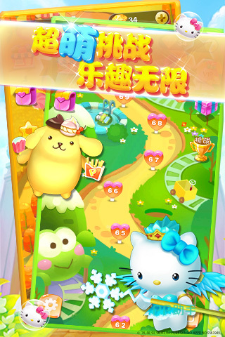kitty猫的大名想必小伙伴们都是非常熟悉的了,她也是众多妹子非常爱的一个卡通角色,而现在小伙伴们可以携手可爱的kitty猫,一起踏上休闲又激萌的消除之旅。