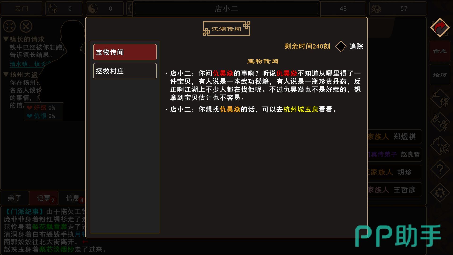 一款单机文字向的武侠RPG手游,虽然没有华丽的画面立绘,不过武侠江湖该有的东西它都有,化身初入江湖的小小少年,各位可以前往各大门派拜师学艺,也可以游历江湖探寻随机事件。
