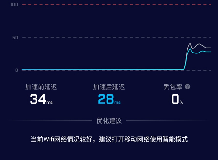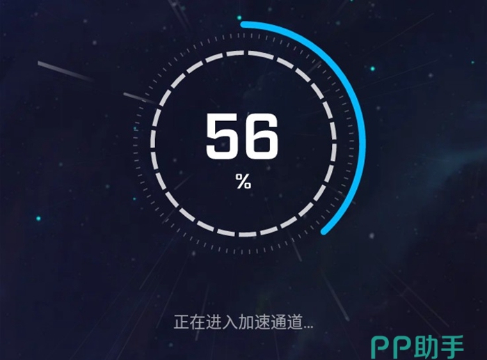 之后我们返回到加速器的主界面,软件会自动为我们扫描手机上已安装的游戏列表,如果游戏支持加速,就能够直接点击游戏名称右侧的加速按钮进行加速了,大家也可以手动添加自己手机上的游戏程序。在加速开启的过程中我们能够看到服务加载的进度条,在进度条达到100%时加速也就成功开启了。