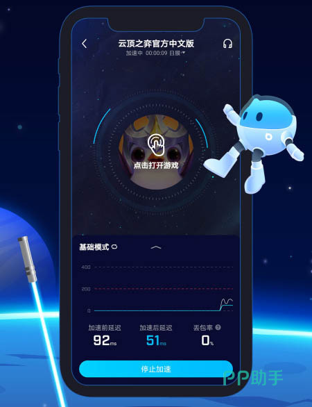 小伙伴们在下载好之后,就能打开它来加速国内外的各种热门游戏了,而且值得一提的是,其加速操作对于用户而言,是非常简单的一键式,小伙伴们只需要轻点其上的加速按钮,就能为游戏开启加速模式。