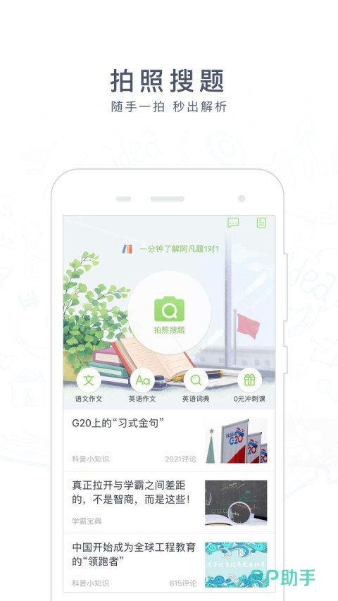 软件实现快捷解题,轻松搞定作业,从而快速拥有好成绩。它设定了私人教师,在线交流与答疑,设定了搜作文和查询单词等学习工具,题目覆盖面广。