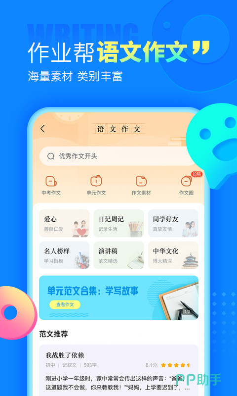 自动批改语文作文的软件专为中学生和小学生服务,下面小编带来自动批改语文作文的软件有哪些推荐2022。软件提供语文作文辅导、错题纠正等,快速巩固知识点,灵活分析知识点。用户们在线搜索成语涵义,实现无障碍阅读等。