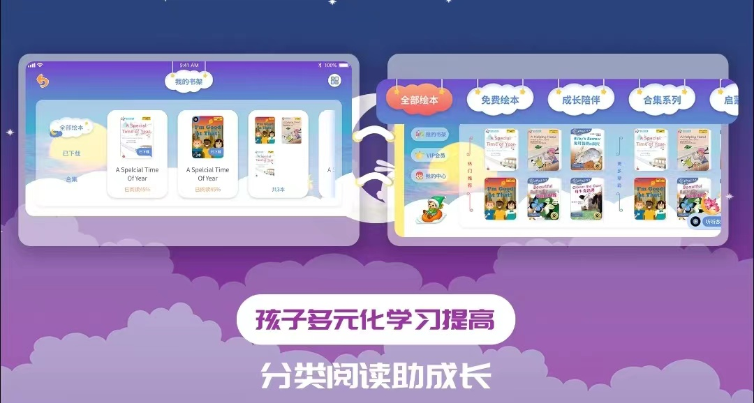 设置有英语绘本、图文绘本、卡通绘画等多种启蒙读物的app,不仅有着朗读英语故事的学习板块,儿童可以自由选择感兴趣的分区,在不同的版块中全方位提升自己的认知。