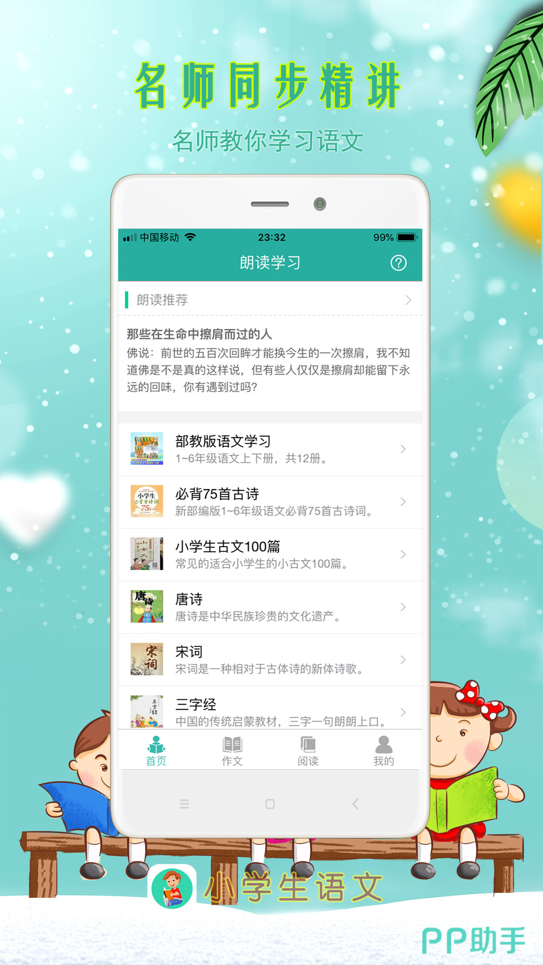 软件以视频朗读学习为主,通过AI智能技术朗诵跟读,掌握发音和朗诵的技巧,训练口语表达和国文素养,同步了中小学语文教材等。
