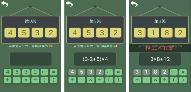 《不懂数学》是一款将四个数字经过加减乘除四则运算组成一个算法,最终结果得到是24的一个游戏玩法。这款游戏的目的简单,玩法通俗,规则易懂,却能很好地锻炼到孩子的反应能力,思考能力以及计算能力。通过一次次的成功,孩子感受到计算的乐趣。从而爱上学习数学。如果你感兴趣,也来试试吧。