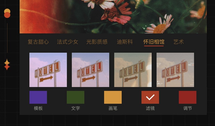 这是一款以复古风格为主的P图工具,软件能够通过老年特效来帮助我们制作出未来自己的效果,就像乘坐了时光机穿越到了未来。而海量的优质贴纸、画笔、文字以及滤镜也在等待大家进行尝试。