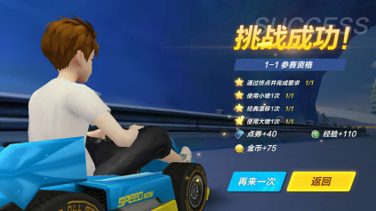 首先我们先要熟悉一下剧情的基本模式,这个游戏的基本剧情模式有四种类型:淘汰赛、个人竞速、个人计时、BOSS赛。每个比赛都有不同的通关条件,想要完美通关要注意这些条件哦。