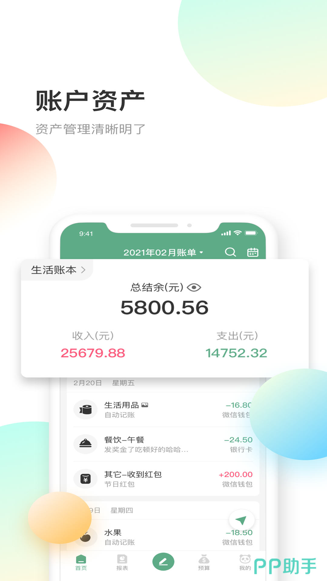 软件界面简洁,功能多样,还带有个性化功能,重现了账目场景,通过十几种维度分析资金流水,实现分场景管理和合并花费等,快速归类账目支出等。