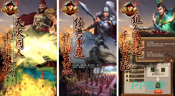 在游戏中玩家将扮演一位平民,需要在三国乱世中,招兵买马,平定诸侯,攻城 掠地,成为一代君王!游戏以经典的三国题材剧情为主,全面创新的战斗玩法,酣畅淋漓的战斗体验,精湛唯美的游戏场景和绚丽的动作特效,带你真实体验三国历史战场。