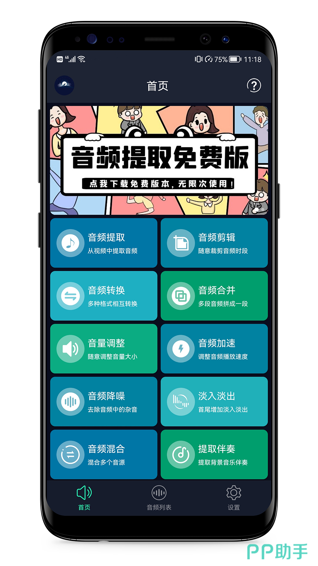 人声分离是音频编辑中非常重要的内容,通过这个软件的使用就可以实现一键分离,还可以提供多种不同的音频格式自由选择,用户可以对手机中的音频实现快速管理以及多样化的编辑。