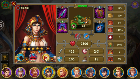 打到火器时代,玩家的战斗水平应该都有了一个长足的进步,一般情况下,一个满级的织田信长或者一个满级的萨拉丁,在玩家手里,应该都已经差不多成型了,所以我们可以利用这两个将领配合着埃及艳后和亚历山大大帝,作为主力来攻克这一关。