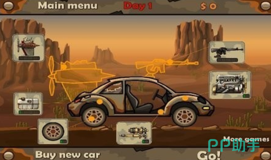 2、每个关卡隐藏着大批僵尸,玩家在驾驶战车的同时,建议使用上性能强大的武器,这样可以提升消灭僵尸的效率。