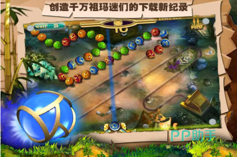 经典游戏画面,华丽的动画特效,精心制作的游戏地图新颖有趣的关卡玩法。特各种特效华丽,新技能升级体系,丰富的游戏玩法、眼花缭乱的游戏道具、帮助您更高的得分、获取更多的奖励。,最不一样的消除游戏尽在《祖玛传说》