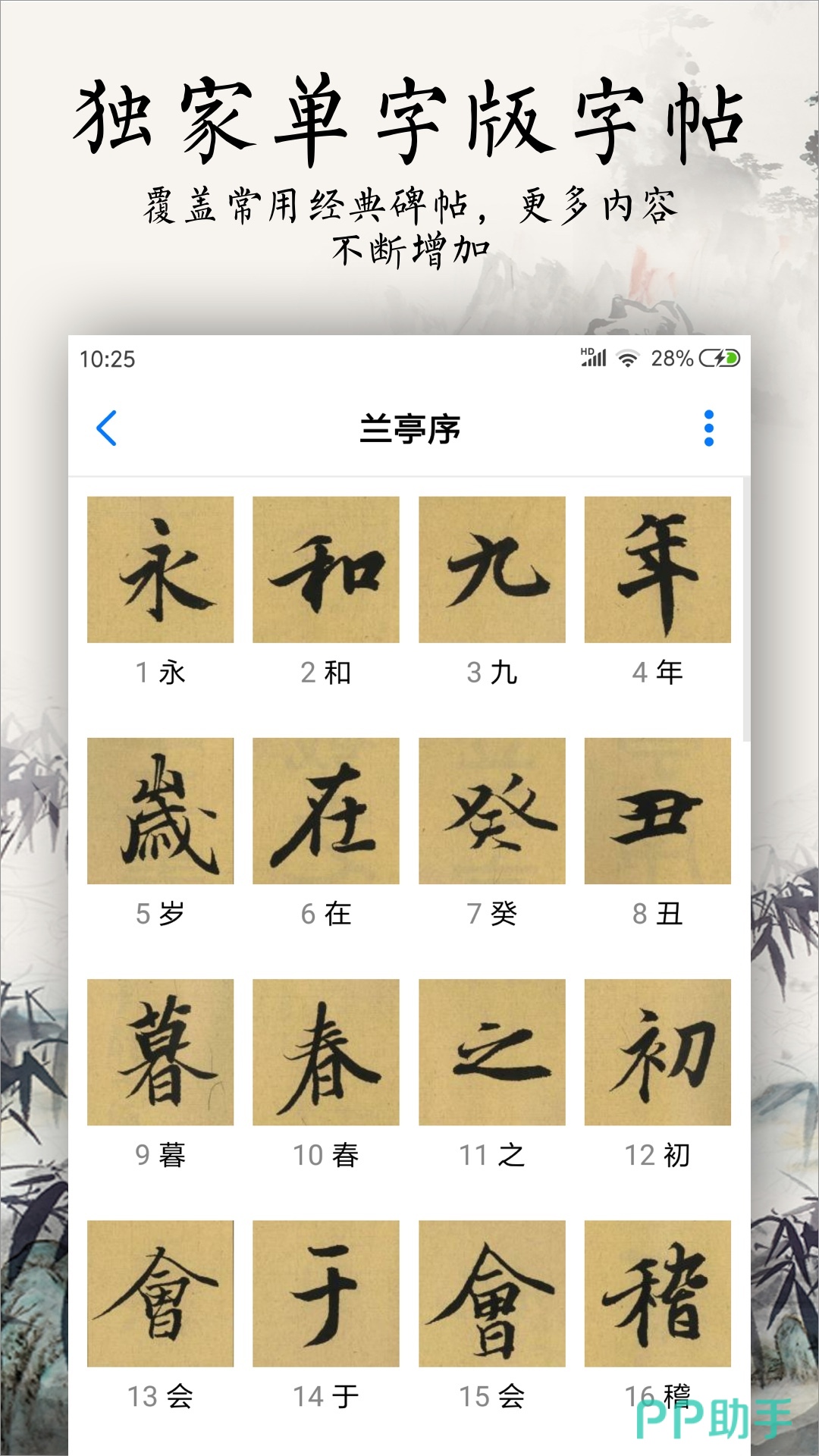 海量高清字帖可下载,也可以自己打印出来成字帖临摹拍照打卡,软件当中拥有权威书法字典,有助于用户轻松下笔练习字体,覆盖常用经典碑帖等。