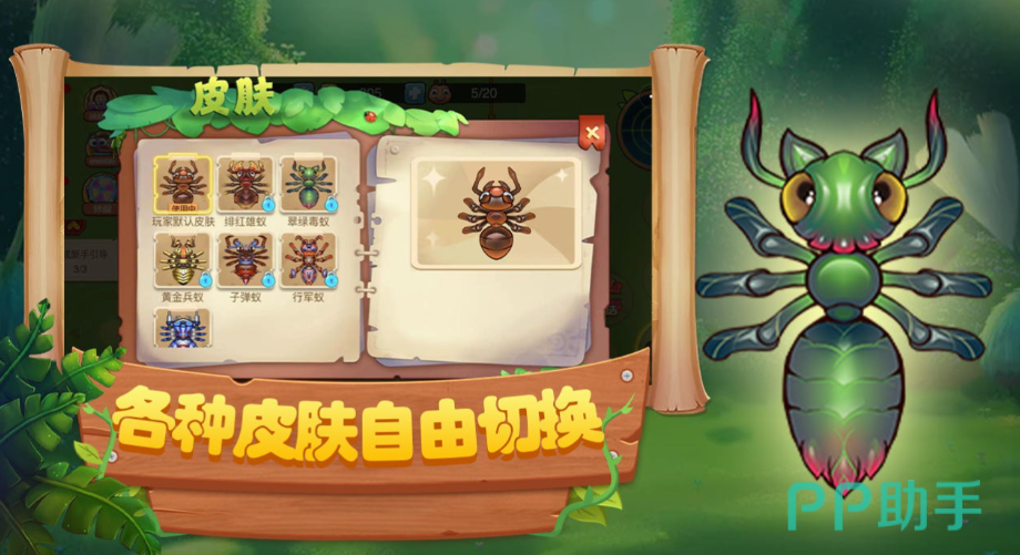 可以随意的更改蚂蚁的外观,同时玩家也需要保证自己的族群有充足的食物挑战冬季,而危险的外部环境中还会出现各种危险敌人。酷炫的战斗特效,将改变游戏整体的氛围。