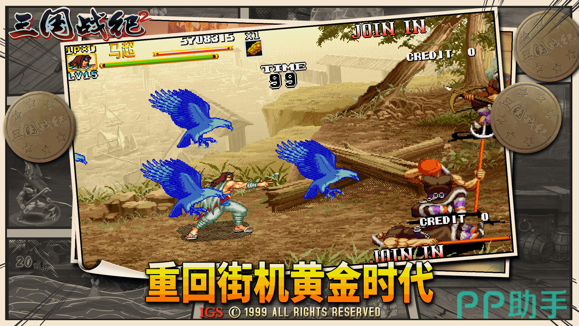 儿时经典的街机游戏三国战记,现在重新出现了手机端,依然是经典的人物设定和技能释放,带领大家重新回到熟悉的年代。同时也加入了很多新的武将,对游戏画面进行了创新,现在技能效果更加炫酷。