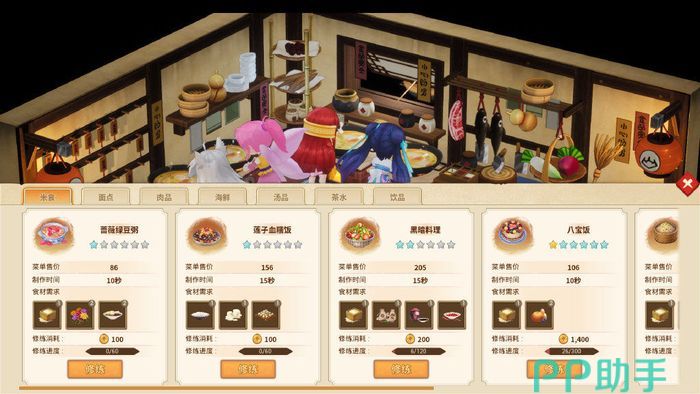 然后游戏内训练的话可以获得经验值,经验值达到要求之后就可以提升菜品的等级了,随着菜品等级的提升,给大家带来的收益也会越高。不过随着等级提升训练的难度也会增加,这个时候则是可以考虑去提升其他低级菜品的等级了,毕竟开客栈当然是每道菜都要做到美味。