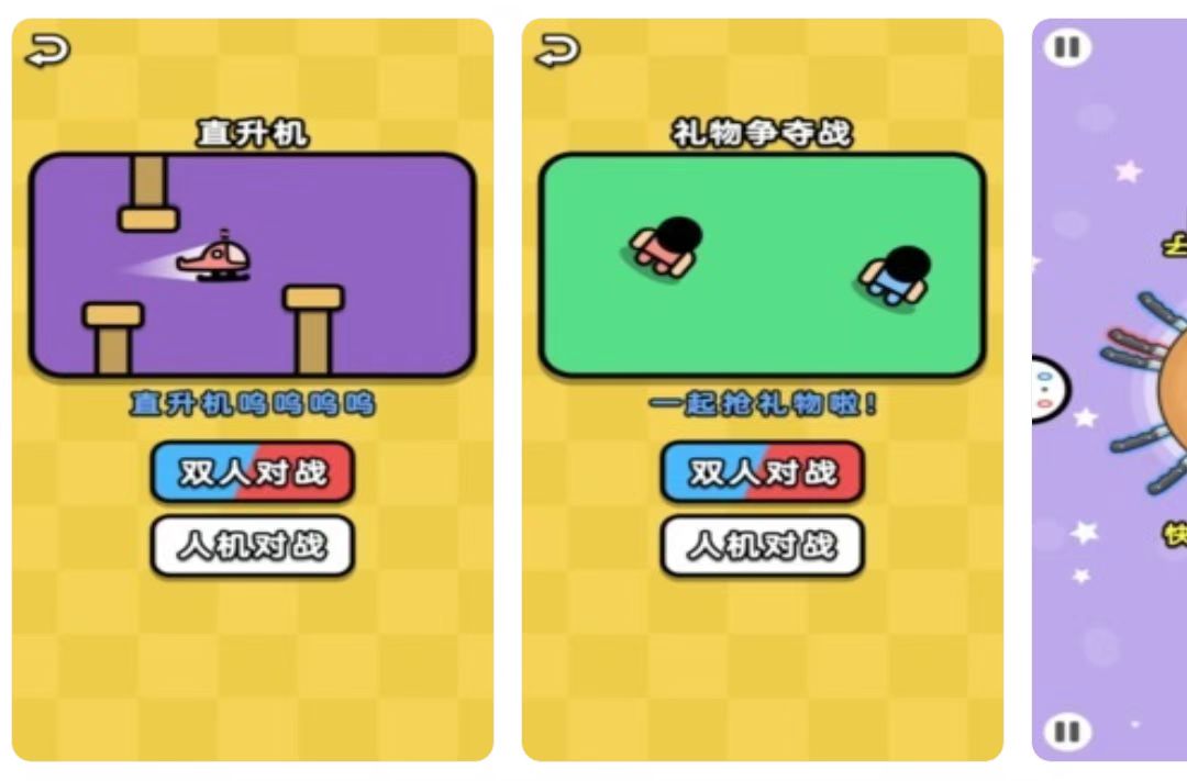 《双人挑战赛》是一款非常不错的益智类竞技游戏,游戏每一次的任务都是不同的,每一个玩法内容都有着不同的场景。游戏采用的是分割线和不同头像的模式作为分辨。里面的游戏也是比较简单的,各种小游戏操作起来非常方便易上手,画风可爱让玩家体验感更加有趣,在游戏比拼途中可以随时暂停。随时随地都可以进行双人挑战。