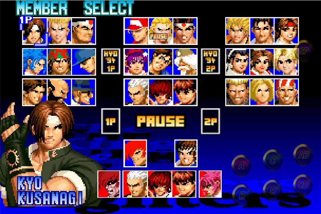 拳皇对决的经典!玩家进入游戏画面后自由选择角色,与对方进行3V3擂台大战--即1V1轮流进行,直到一方最后一人落下为止,未倒下者为胜者!玩家在进行对抗时,可以选择特别设定的简易模式--简易的按键就能让技能变得强大起来!经典模式也能延续——需要复杂的按键组合才能释放技能!无论哪种方式,都不会少了一份快乐!