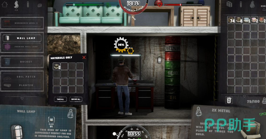 出发前,我们已经做好了一切准备工作。具体工作内容为:食物放冰箱,金属10块,棒球棒制作工作台。一切准备就绪,便可启程。先做棒球棒,再拿上食物和10块金属,跑到森林1-3去找老妇人,老妇人不需要拿信也能找得到。