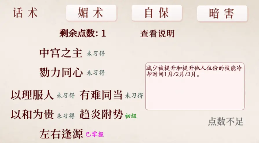 在这款游戏中有很多的数值需要考虑,例如在某一方面有所建树的时候就会解锁技能,合理的使用技能可以让游戏变得更加简单,当然出身也会自带技能,所以小编建议大家刚开始的时候选择出身好一点吗,这样玩起来就会比较简单。