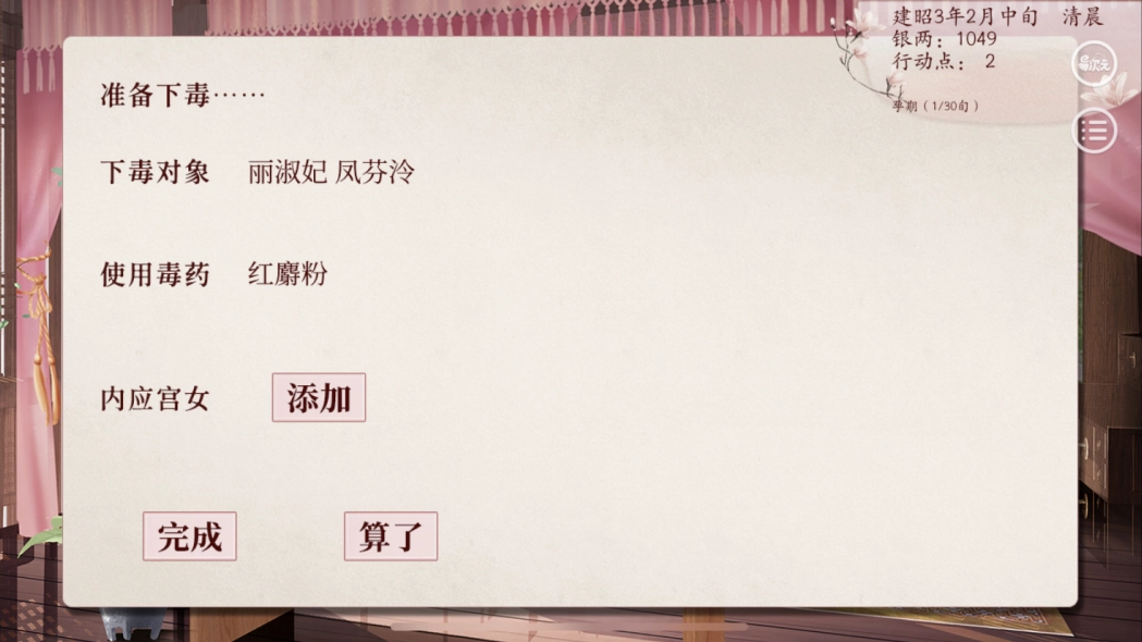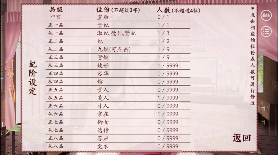 在这款游戏中玩家们可以自由选择自己的出身,无论是家境贫寒的小丫鬟还是高阁中的深闺都可以选择,不同的出生带来的属性点和道具都是不一样的,自然玩法难度也不一样。但是不管什么类型的出身都有一个共同的目标,那就是进入宫中抓住皇上的心,最后将其他所有的妃子全部挤下去,自己成为母仪天下的皇后。