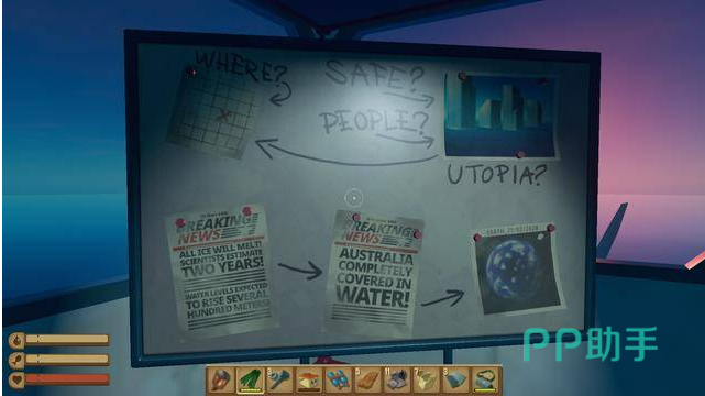 相信玩家们对《辐射4》中的这句“上手一条狗,装备全靠拾取”已经烂熟于心,而这句话稍作改编就换成了《上手一条船,装备全靠拾取》,用来形容这款游戏再好不过了。玩家在游戏开始时被放置在2乘2格的筏子上方,手握工具钩。这场比赛不给出背景,也不给出球员们要去做什么的答案。只给玩家讲简单的操作教程,以及如何利用工具来维持生计的方法。由于是海上的孤舟,所以玩家要想办法扩大浮格的自己的筏子,以及为了保证自己的生存而种植食物,这才是首要的目的。
