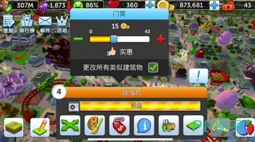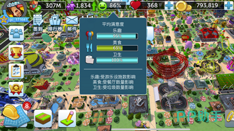 游戏里边涉及到单个建筑的满意度主要就是通过过山车跟美食跟其他商店来获取,其中影响最大的就是物品跟门票的单价,如果定的价格越高的话那么满意度就会月底,反之满意度就会有所提升。过山车的话就是根据配件跟四种等级相互匹配的,其他影响最大的就是轨道的等级所以这个在设定的时候一定要多多注意。