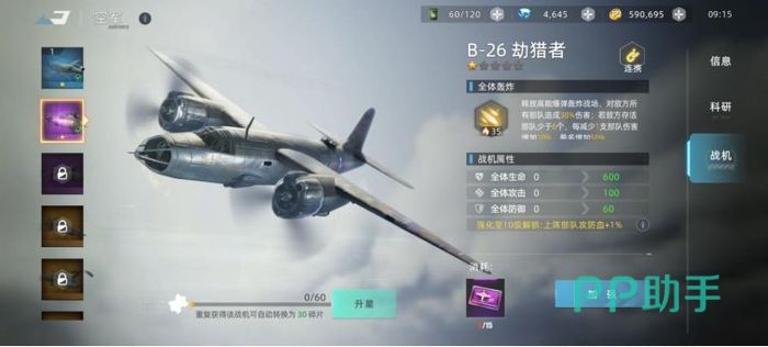 信息上面会显示该战机的所有资料,以及他的攻击力、防御力、速度,此外大家还可以在上面了解他的技能效果,科研是提升战机战力的一个模块。