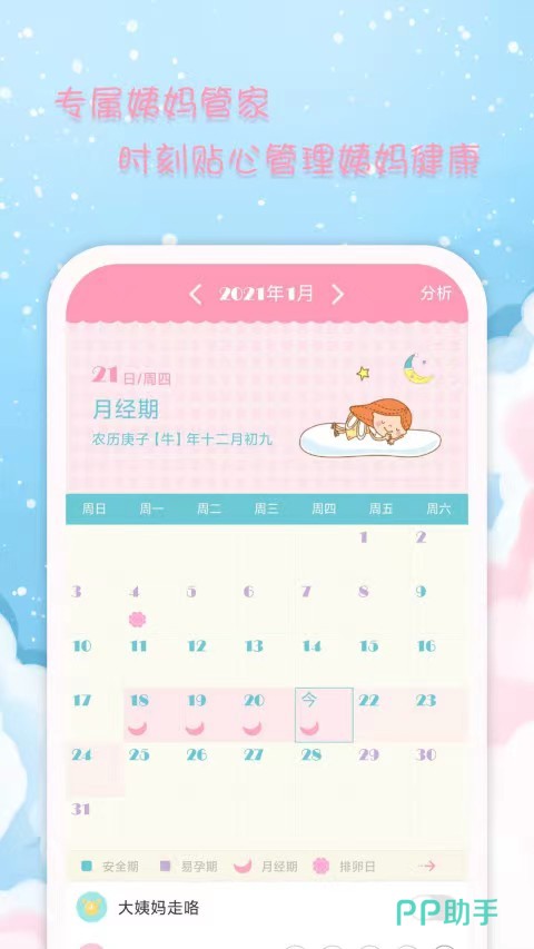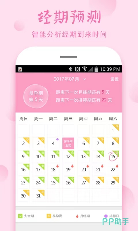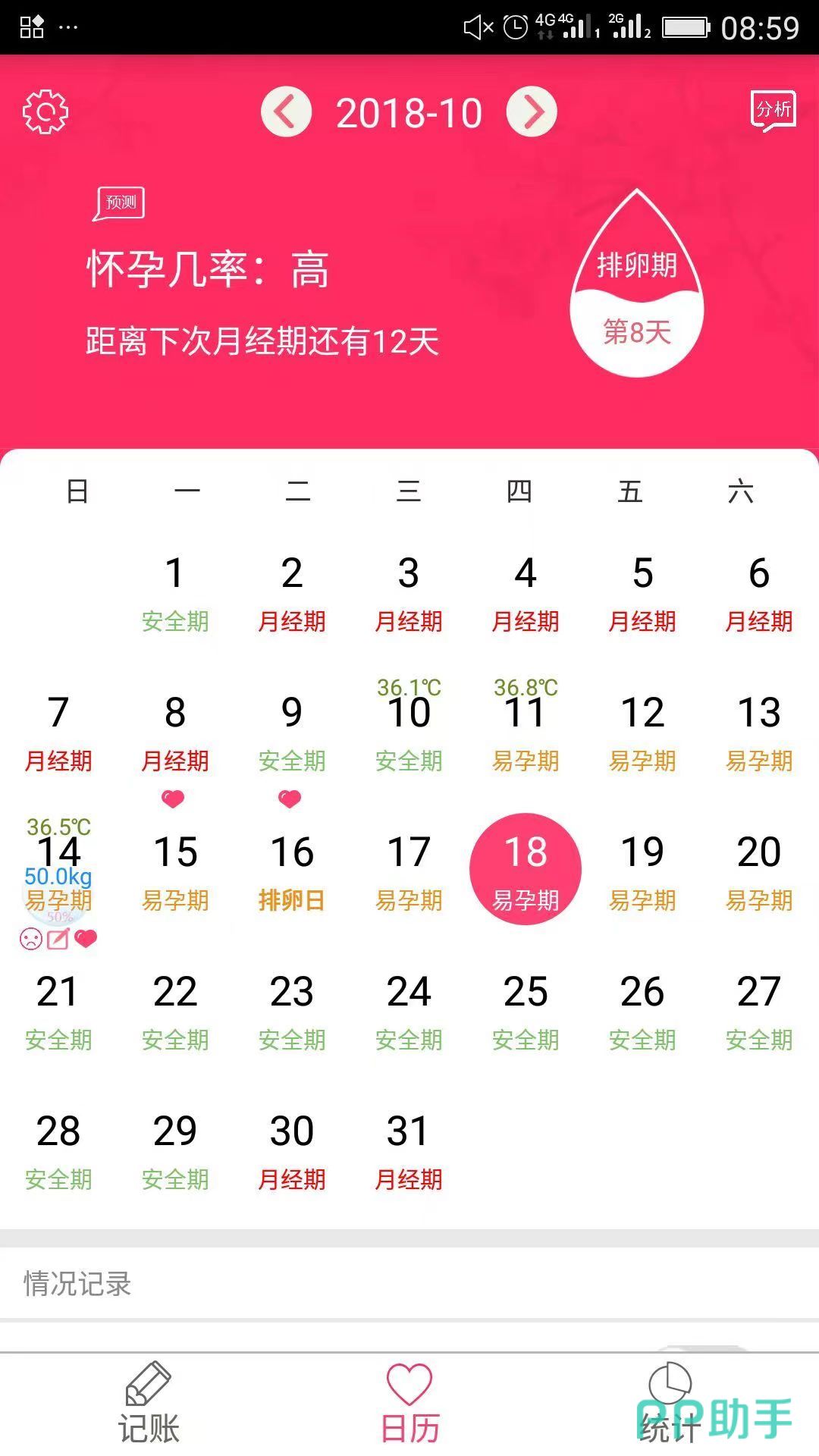 软件通过用户记录月经期就能使用科学的方法,进行推断安全期、排卵期、易孕期等等,而且图案都清晰易懂,轻松帮助用户了解自己。
