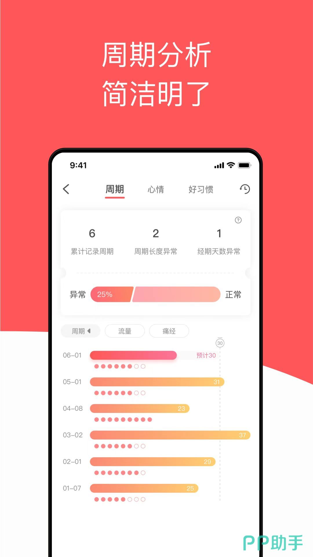 这款软件,大多数女生都不会陌生吧,知名度很广,除了基础的记录月经之外软件还贴心的设计了智能提醒,这样就不会忘记记录,也不会错过重要时间啦,粗心的小伙伴一定要试试。