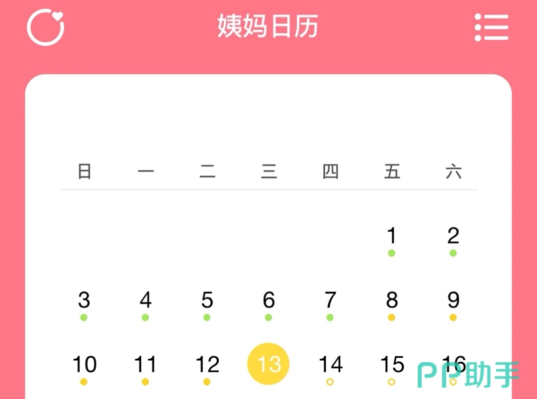 简单好用的一个大姨妈记录神器,圆盘的分析设计图让小伙伴们一目了然就可以了解到自己的情况,日历查询大姨妈到来的时间。