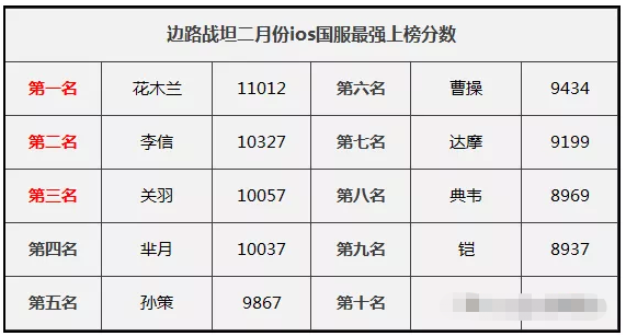 边路战坦英雄,国服最强上榜分数前十有三种类型: