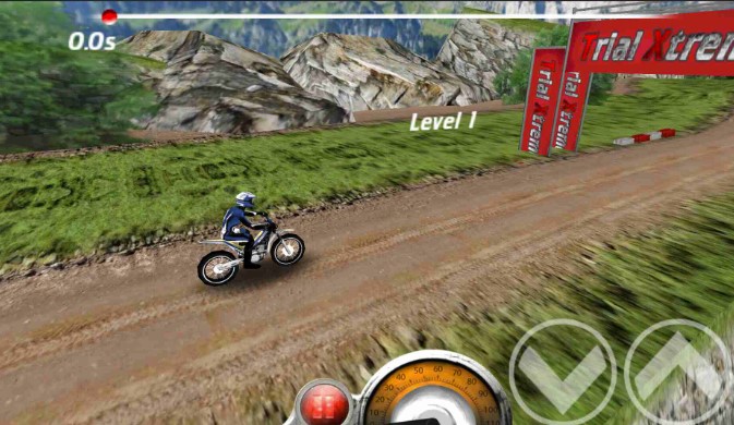 游戏的操控方式为重力感应与触屏相结合。向左倾斜时,摩托车会出现前轮上翘、向右倾斜、后轮上翘的情况,而角色(后仰或翘臀)的动作也会发生相应的改变。屏幕左下方箭头为减速煞车按键,右下方为加速按键。没有复杂的赛道,不停地跑直线,不需要拐弯,留下的只有疯狂到极致的动作,通过木板飞上天空,可以在空中旋转,木板搭空,木桩连绵不断,甚至可以垂直冲向半空,玩家可以让摩托车手玩出一连串惊险刺激的动作。