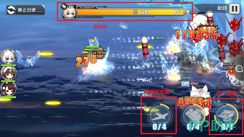 后排是吃喝体系-赤城、加贺与旗舰长门。长门的旗舰BUFF为吃喝体系增加了最大20%的伤害增益,而吃喝体系的先手必胜BUFF足以清除掉BOSS前的小BOSS+小怪,极大的加快了推图的速度。最后面对BOSS的时候由长门的清屏技与炮击,加上吃喝的双空袭,足以秒杀BOSS,提高推图效率。