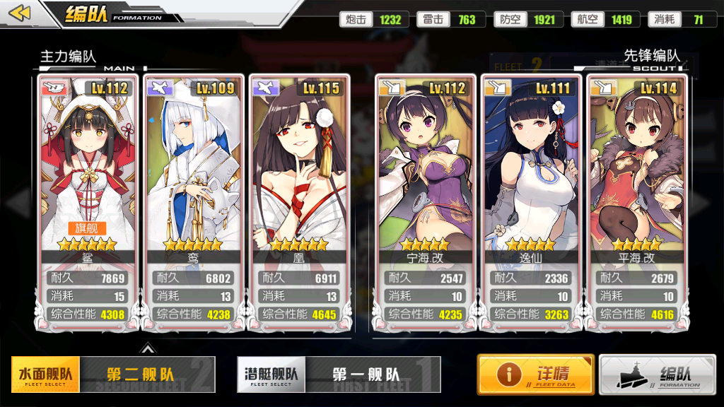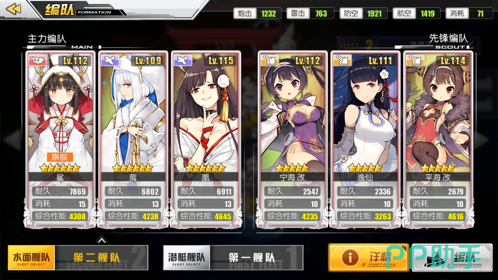 前排是国家队-逸仙、宁海改和平海改。由逸仙BUFF[技能-东煌之绊]提供的高回避和减伤,在BOSS战足以支撑前排的坦度,而双海BUFF[技能-姐妹同心]提供的高炮击加成和自身的炮击加成改造保障了前排足够的火力输出。