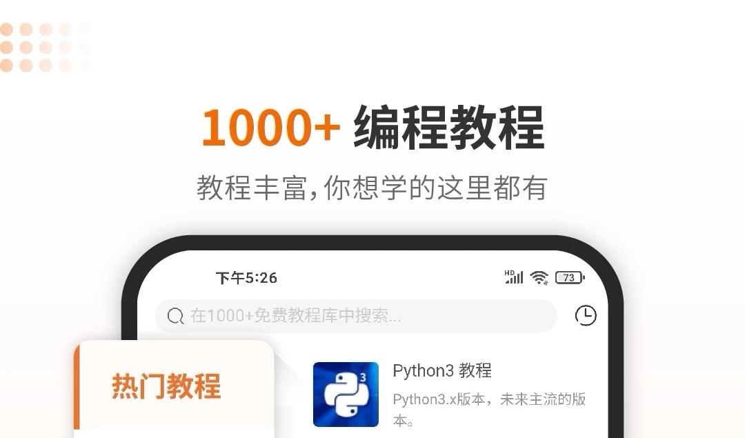 专注于为零基础的编程爱好者量身打造的,让大家轻轻松松就可以迈入编程的大门,不仅可以进行理论知识的学习,还可以进行编程实践,随时随地在手机上就可写代码。