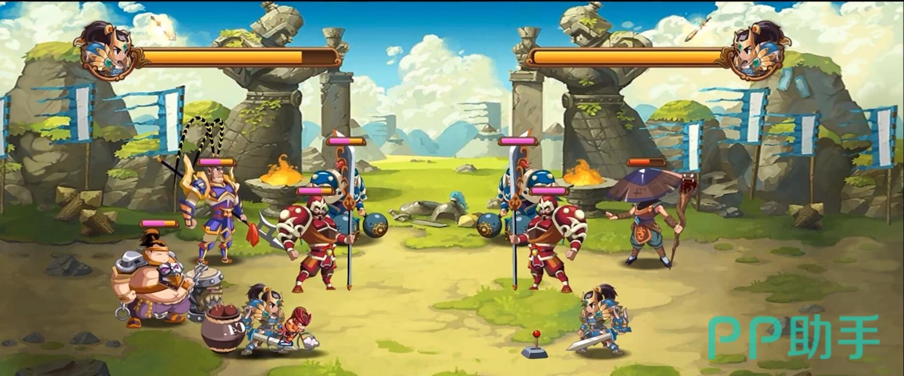 游戏中的武将兵种都有自己超级可爱的Q版动画立绘,精美的画风,简洁的操作方式会让你喜欢上这种横版出卡策略游戏!