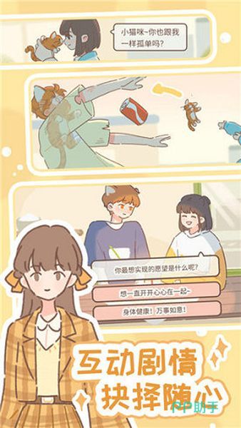 游戏中的养猫可不像现实中的一样单调奥,当然不只是你单方面的对猫猫付出,等亲密度到达一定量的时候,你就可以获得一只人型帅猫,你还可以和猫猫倾诉,他会帮你解决压力奥。