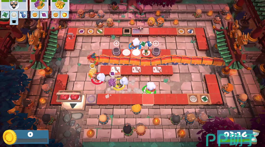 胡闹厨房2本身就是特别适合两人甚至是多人合作竞赛的游戏,不管是PS设备还是在电脑平台上下载,都是可以允许玩家们跨平台联机的,游戏除了普通的剧情闯关模式之外,最有意思的设定还是每个菜品需要多人共同配合才能完成,做菜上菜菜盘子,洗盘子煎牛排切西红柿以及蒸煮切各种操作在这款游戏内表现的淋漓尽致,玩起来是非常欢乐的。