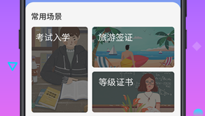 在《二寸证件照制作》这款软件里,一般规格有一寸、二寸等,考试报名有四级、六级电脑等,旅行需要有护照、签证等,日常需要有社保、驾照等!有了两英寸的身份证照片制作,你就不用去照相馆了。
