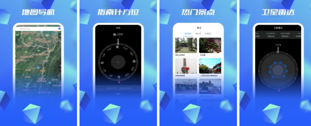 大家可以用它来进行地图的导航,也可以去在线观看各种热门景点的实时画面,同时它也具备着指南针,帮助大家快速的清晰定位自己所在的方位,更具备卫星、雷达等多种不同的功能,满足大家的日常生活使用。